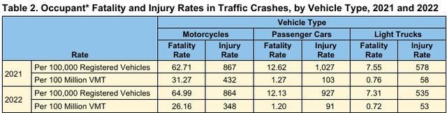 美国交通部对摩托车的交通风险也做过详细分析。2022年,美国摩托车摩托车保有量约957万,占全部机动车比例仅3.4%,其行驶里程占机动车总行驶里程(VMT)的比例更是仅有0.7%。但摩托车却导致了15%的交通死亡人数,摩托车每10万辆车死亡率为64.99,是乘用车(12.13)的5倍。更糟糕的是,每亿车公里死亡率为26.16,是乘用车(1.20)的近22倍。在事故原因方面,超速占35%,年轻群体高达51%。