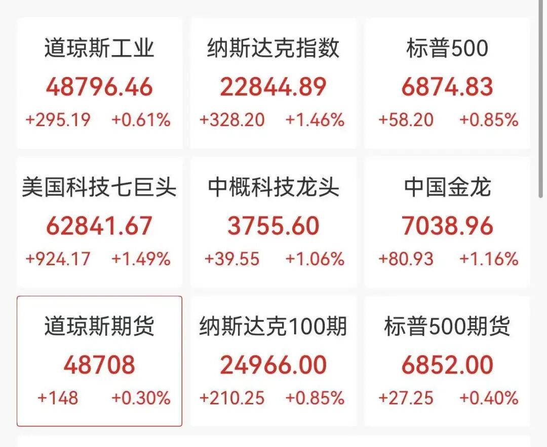 大型科技股集体翻红,亚马逊、特斯拉涨超3%,META涨超2%,英伟达涨超1%。
