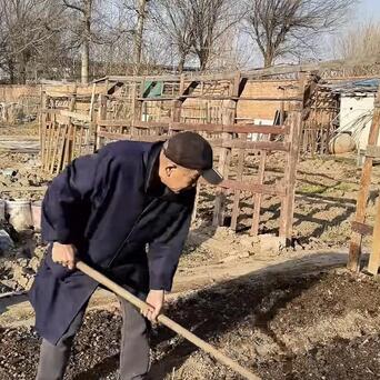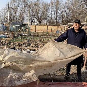 公公教梅婷翻土,找出来小白菜种子撒上,最后还拉着塑料布,自己做简易大棚,看起来特别朴实。