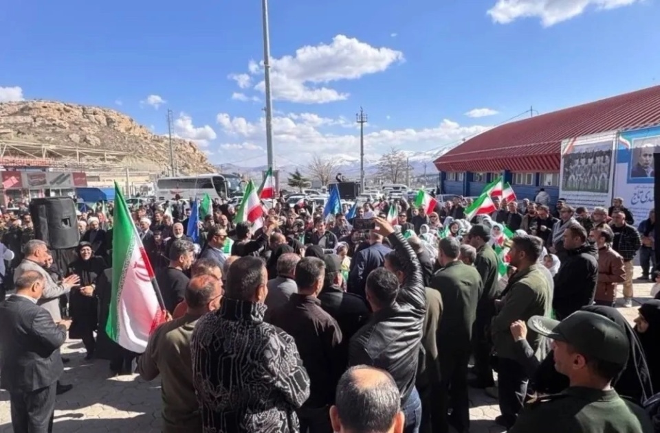 在伊朗这一边,巴扎尔甘边境站的官员和民众举着伊朗国旗,欢迎球员们的归来。球员们带着头巾,神情还是非常放松的。