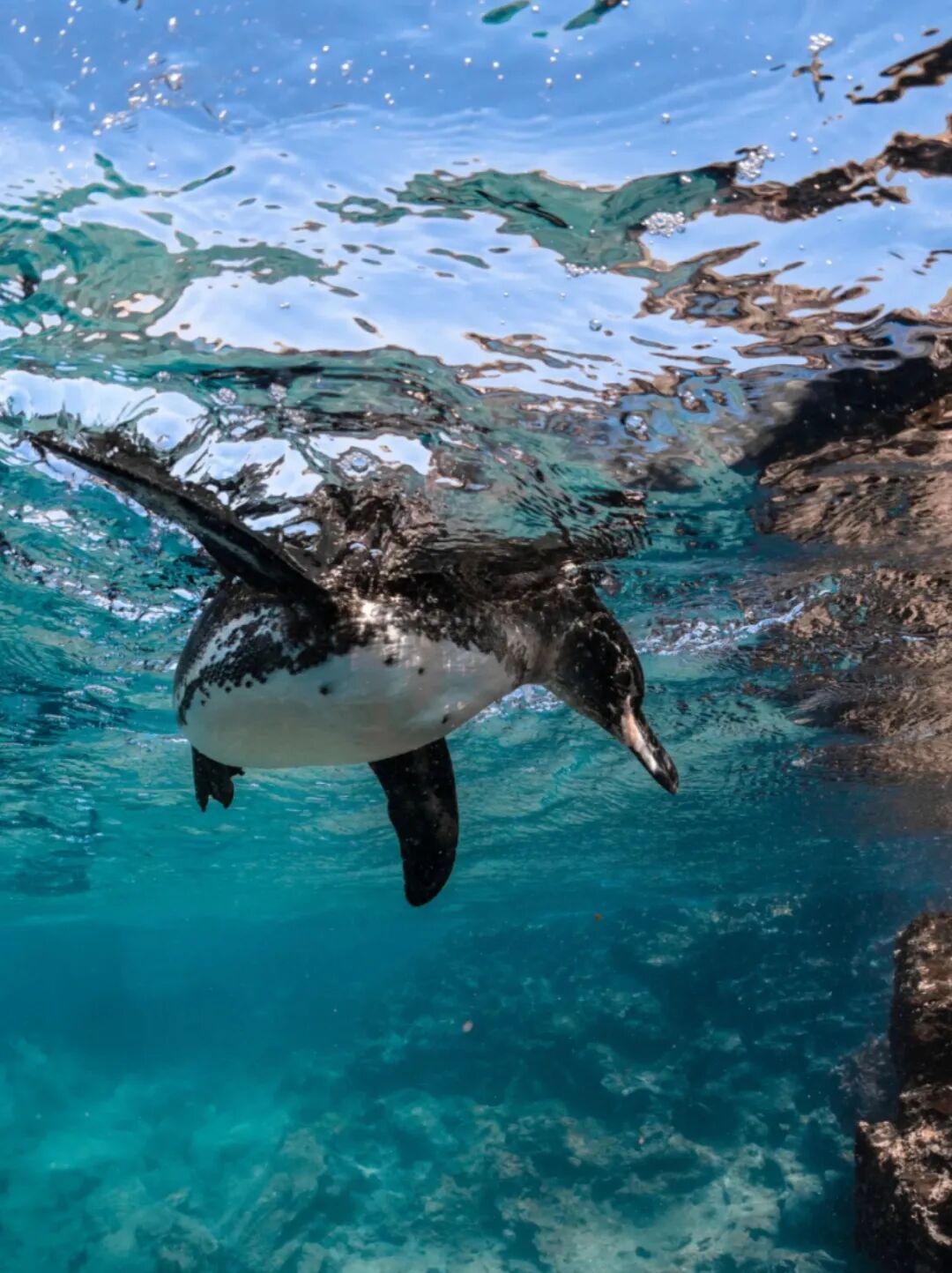 这里还是加拉帕戈斯企鹅主要的家园之一,运气好的话,在浮潜时还能碰见在水中飞速穿行的小企鹅。