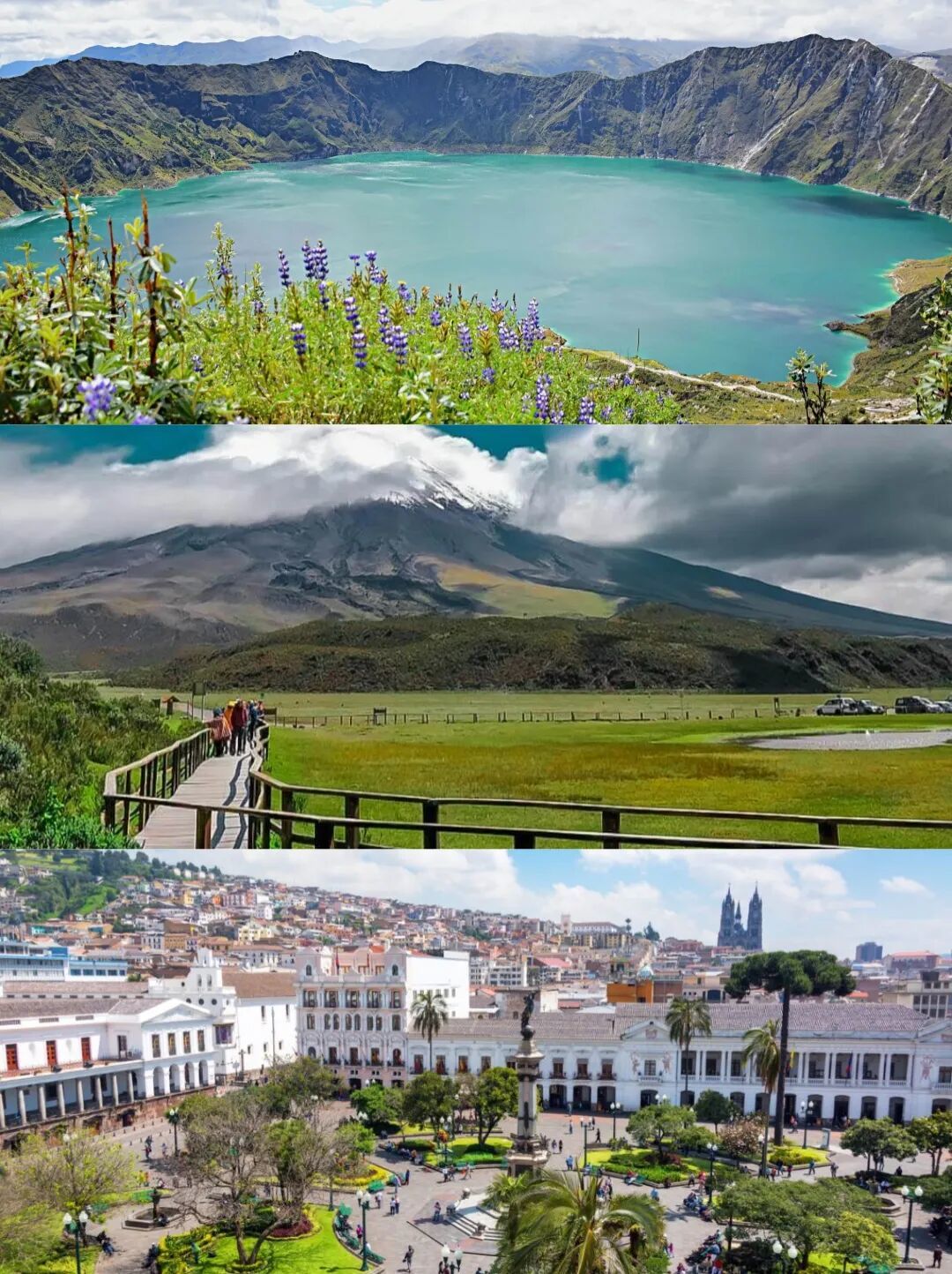 国境中部,是雄伟的安第斯山系所塑造的高原,海拔超过5000米以上的火山锥多达20余座。超过200万人口的首都基多,就建立在世界上最高的活火山之一的科多帕希(Cotopaxi)旁,在城市便能眺望到终年积雪的山顶。