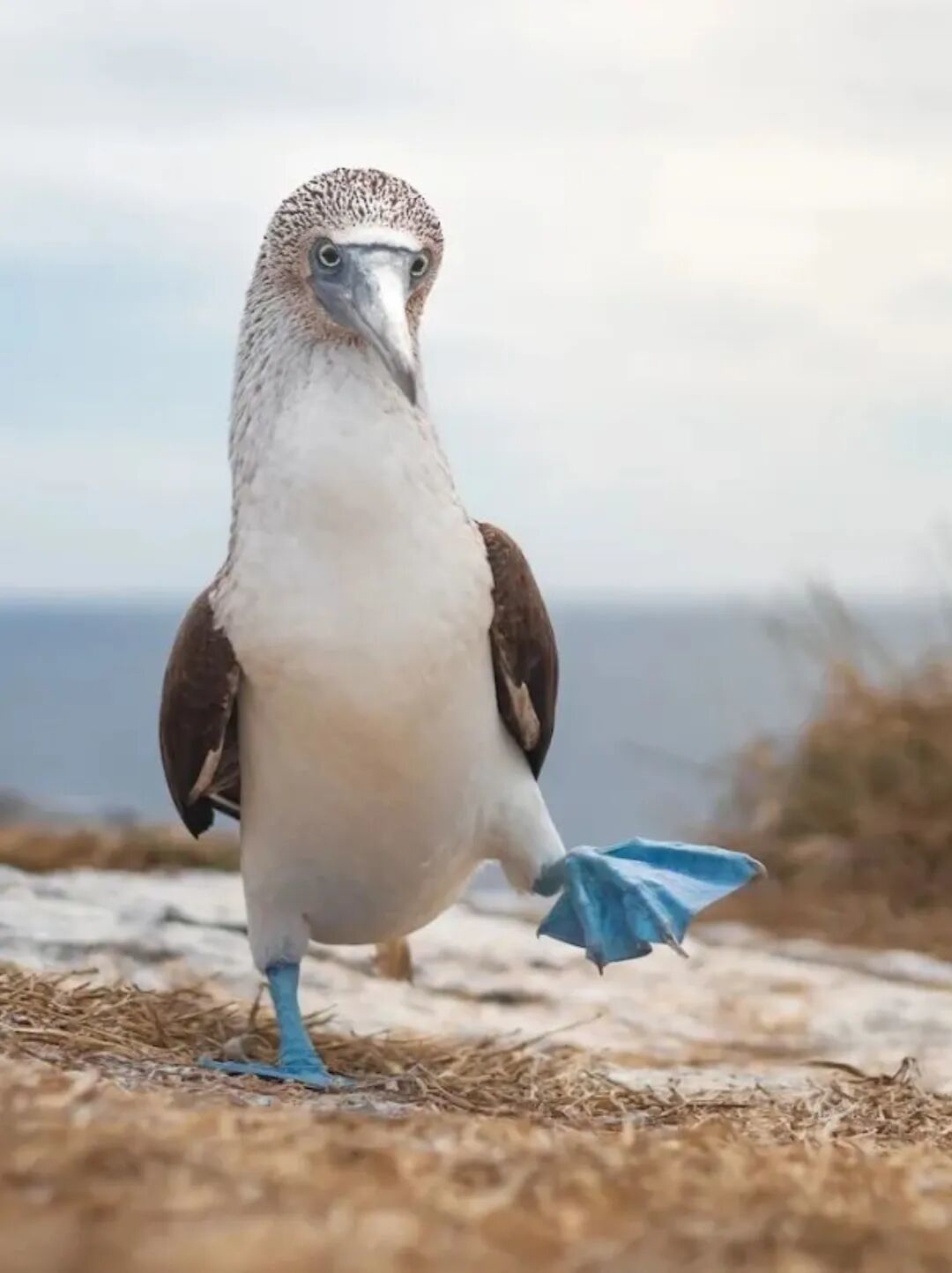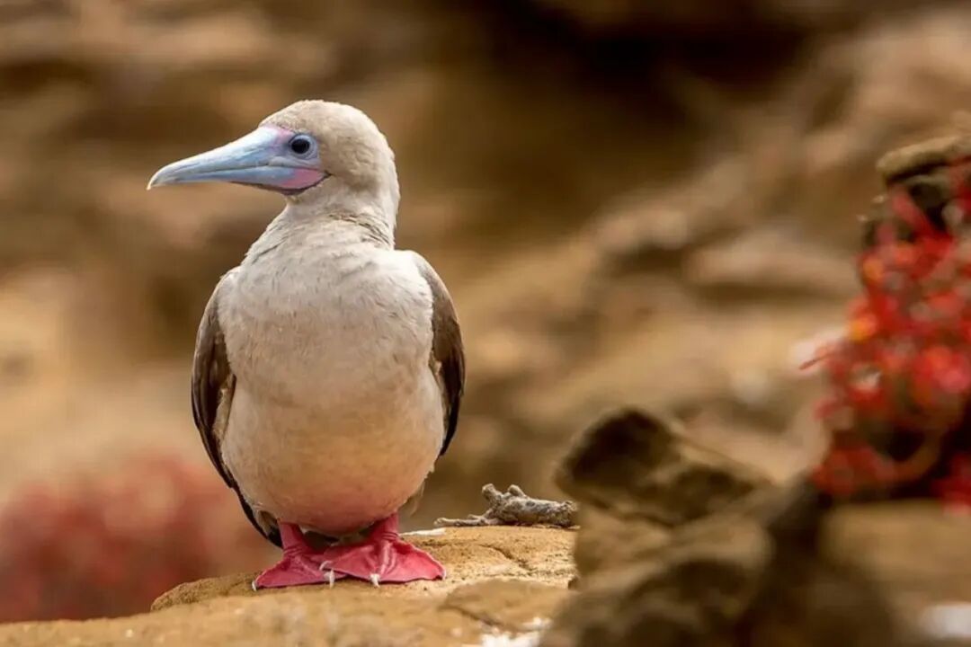 蓝脚鲣鸟像是穿着小蓝靴子的绅士和淑女,脚蹼的蓝色越鲜艳,说明身体越健康,边抬脚边摇摆的动作,是鸟儿最拿手的求偶舞;