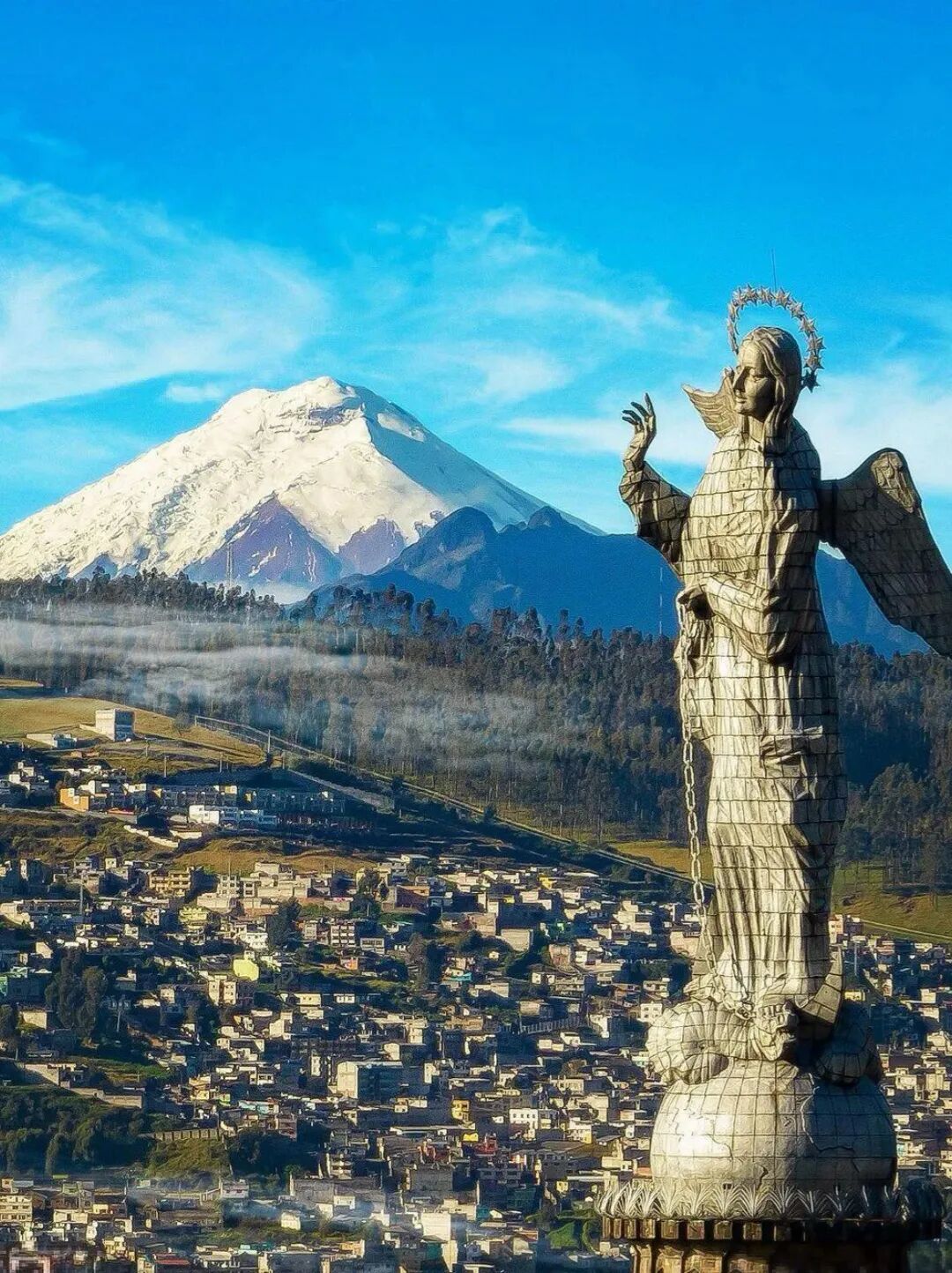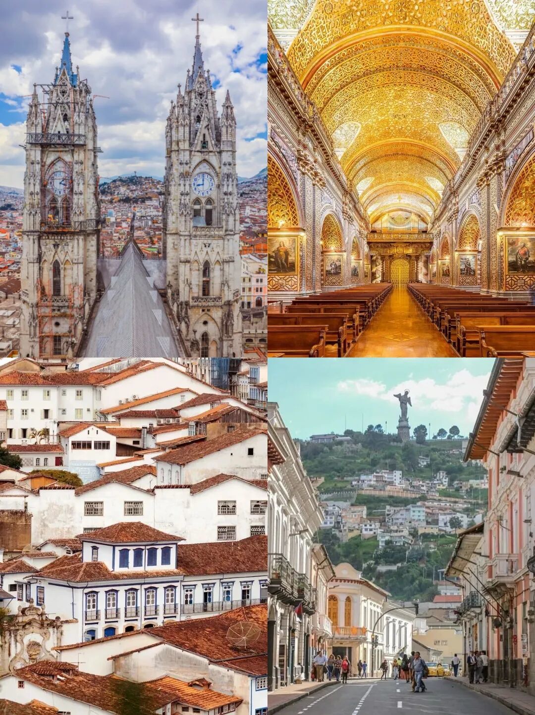 如果想360°饱览老城全景,并欣赏罕见的“赤道雪山”景观,可登临城市制高点面包山(El Panecillo),这里还树立着世界上最大的铝制圣母像。