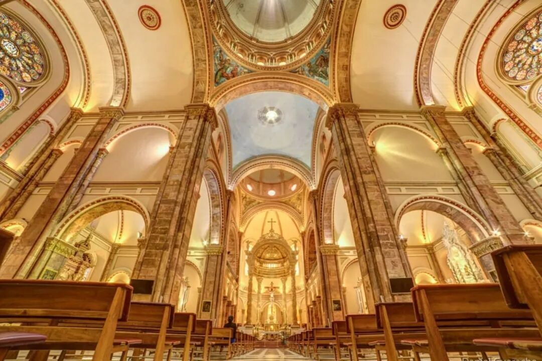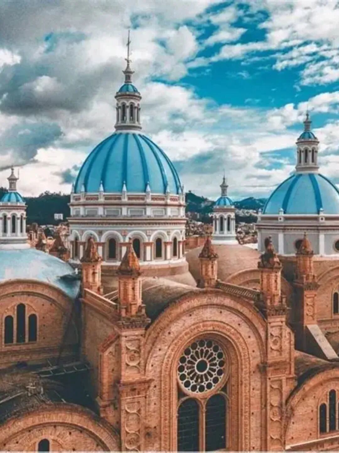 以蓝白相见的穹顶和彩色玻璃窗闻名的新主教堂(Catedral Nueva),是昆卡的城市象征,自1885年修建,共耗时近90年完工。穹顶的琉璃瓦是从捷克斯洛伐克进口,整体风格与布拉格有着异曲同工之妙。